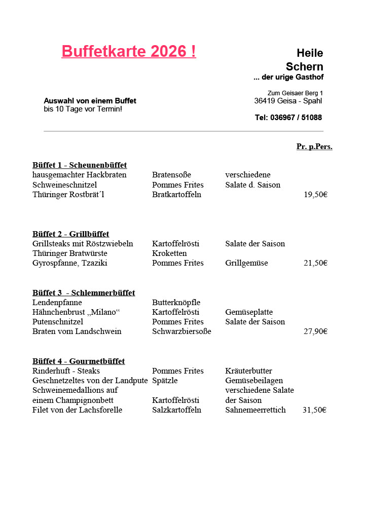 Für Gruppen ab 20 Personen stellen wir gerne ein individuelles Büffet zusammen. Bitte kalkulieren Sie mindestens 1 Woche Vorlaufzeit ein.